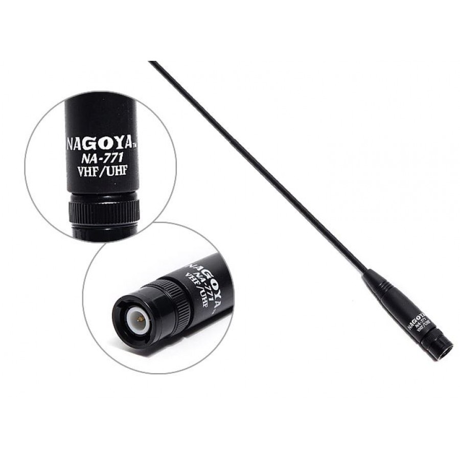 Η κεραία VHF UHF Nagoya NA-771 έχει εξαιρετικά χαρακτηριστικά και πολύ μικρό βάρος. Είναι εύκαμπτη με καλή απολαβή σε μαύρο χρώμα. Επίσης είναι πολύ ανθεκτική με μεγάλη αντοχή στο χρόνο. Λαμβάνει πολύ καλά επίσης στις μπάντες 120-150-300-450-800-900 Mhz.