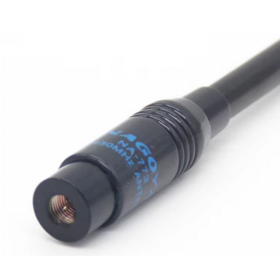 Η κεραία VHF UHF Nagoya NA-773 έχει εξαιρετικά χαρακτηριστικά, μεγάλη ενίσχυση και είναι τηλεσκοπική. Μαύρη όταν είναι κλειστή με μόλις 11cm μήκος. Επίσης είναι πολύ ανθεκτική με μεγάλη αντοχή στο χρόνο. Λαμβάνει πολύ καλά επίσης από την συχνότητα 0.5Mhz - 800 Mhz.
