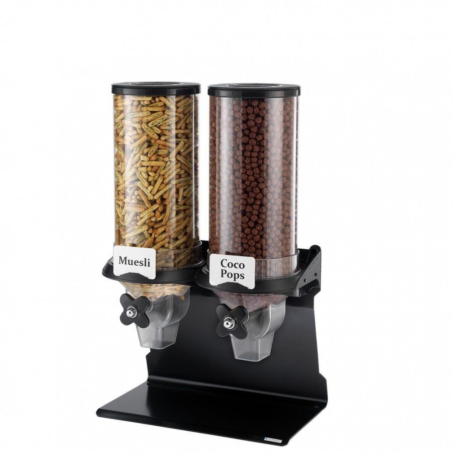 Διανεμητής Δημητριακών PROFIT με μάυρη βάση και 2 διαφανές δοχεία 6 λίτρων GARIBALDI CST01-260-BK