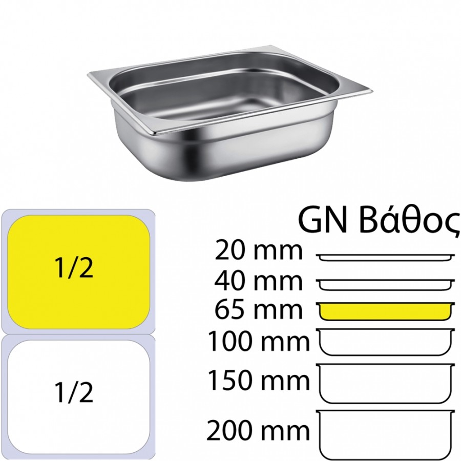 Δοχείο γαστρονομίας ανοξείδωτο 18/10, GN1/2 (32.5x26.5cm)-6,5cm, FUECO