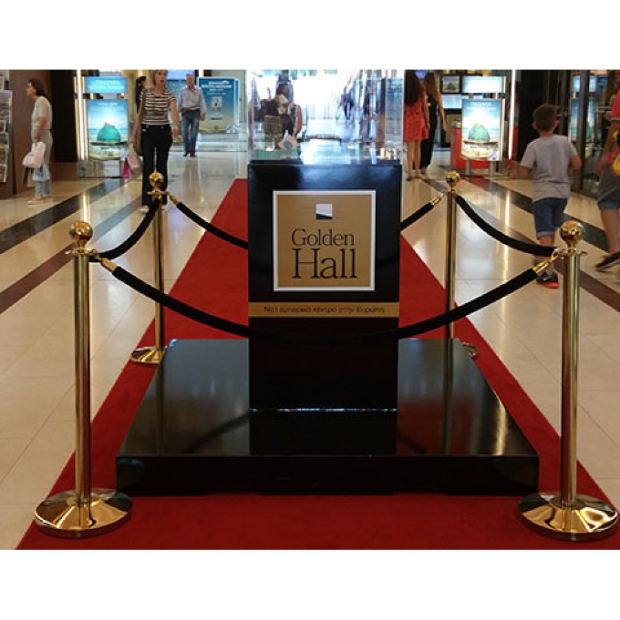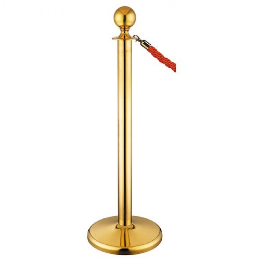 Κολωνάκι οριοθέτησης με βαριά βάση σε χρυσαφί χρώμα κατασκευασμένο από ανοξείδωτο χάλυβα με γυαλιστερό φινίρισμα. Διαθέτει ενσωματωμένες υποδοχές στο επάνω μέρος για να δέχεται σχοινί ή κορδόνι. Το κολονάκι έχει συνολικό ύψος 100 εκατοστά. Είναι κατάλληλο για οριοθέτηση χώρων και κατεύθυνση κοινού σε χώρους μαζικής συνάθροισης. Ιδανικό για ξενοδοχεία, εκθεσιακούς και συνεδριακούς χώρους.