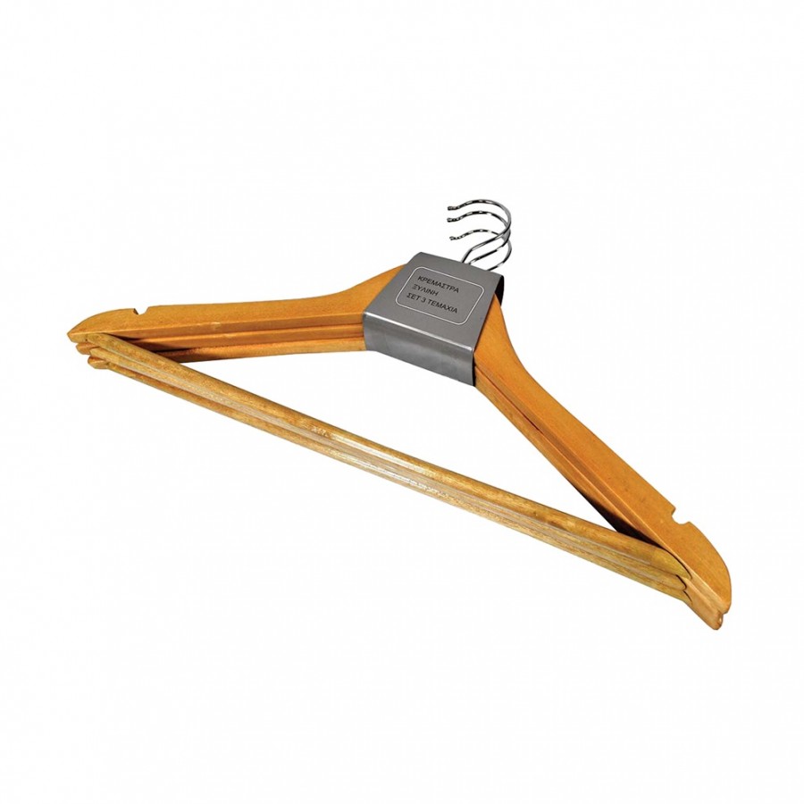 Πακέτο 3 κρεμάστρες ξύλινες με ράβδο, 44.5x1.2x23cm WS-42/593 σετ 4 τεμαχίων