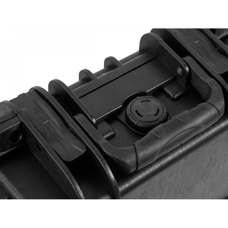 Η θήκη είναι κατασκευασμένη από κρούση και πολυπροπυλένιο ανθεκτικό στην υπεριώδη ακτινοβολία και διαθέτει ένα πλήρως προσαρμόσιμο εσωτερικό αφρού για ανώτερη προστασία από τις κρούσεις. Μια βαλβίδα εκτόνωσης πίεσης σας επιτρέπει να εξισώνετε αργά και με ασφάλεια την πίεση μέσα και έξω.