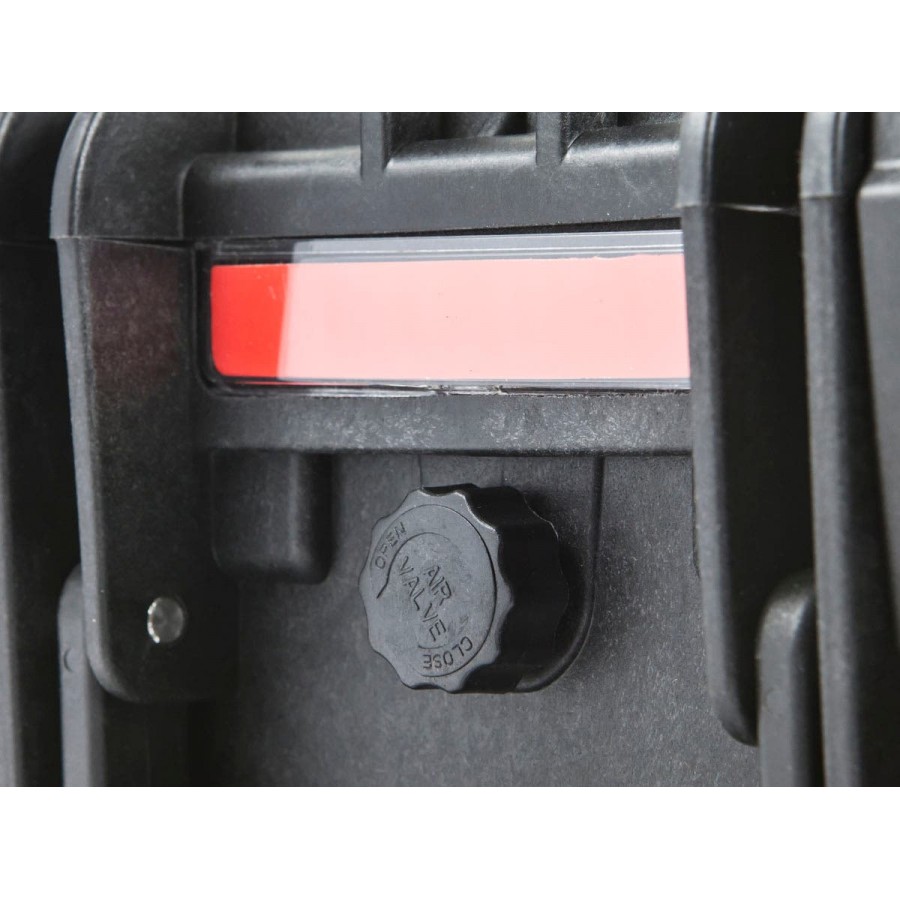 Η θήκη είναι κατασκευασμένη από κρούση και πολυπροπυλένιο ανθεκτικό στην υπεριώδη ακτινοβολία και διαθέτει ένα πλήρως προσαρμόσιμο εσωτερικό αφρού για ανώτερη προστασία από τις κρούσεις. Μια βαλβίδα εκτόνωσης πίεσης σας επιτρέπει να εξισώνετε αργά και με ασφάλεια την πίεση μέσα και έξω.