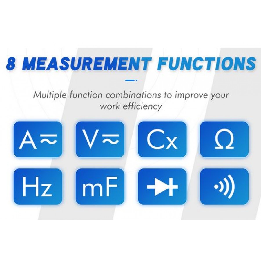 Λειτουργίες μέτρησης πολύμετρων: τάση AC/DC, ρεύμα AC/DC, αντίσταση, χωρητικότητα, συχνότητα, κύκλος λειτουργίας, δοκιμή διόδου, δοκιμή συνέχειας.