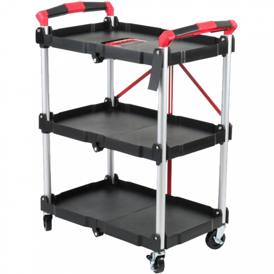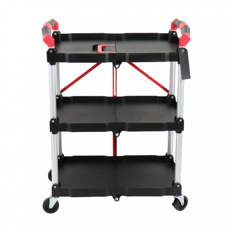 Καρότσι πλαστικό, αναδιπλούμενο, με 3 ράφια, μαύρο, 65x35xΥ84cm
