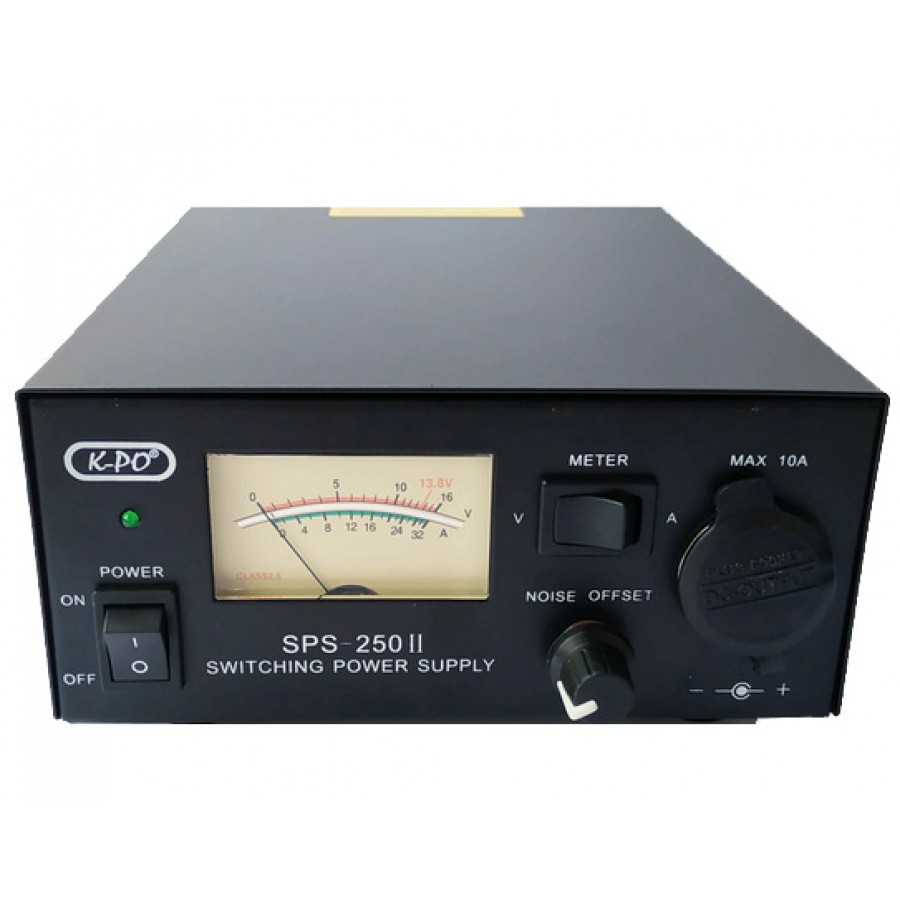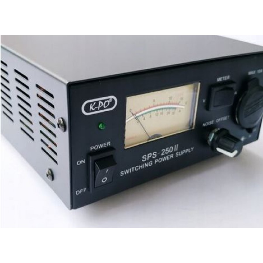 Το K-PO SPS-250-II είναι ένα συμπαγές τροφοδοτικό με συνεχές φορτίο 20Α και φορτίο αιχμής 30Α. Χρησιμοποιεί τεχνολογία switch-mode και έχει πλήρη προστασία εξόδου. Ο μεγάλος αναλογικός μετρητής μπορεί να δείξει Τάση ή Αμπέρ, που επιλέγεται από τον μπροστινό διακόπτη. Με τις μικρές του διαστάσεις ταιριάζει σχεδόν σε κάθε γραφείο. Υπάρχει και μικρή έξοδος 10Α εμπρός στην συσκευή με τον γνωστό κονέκτορ αναπτήρα αυτοκινήτου.