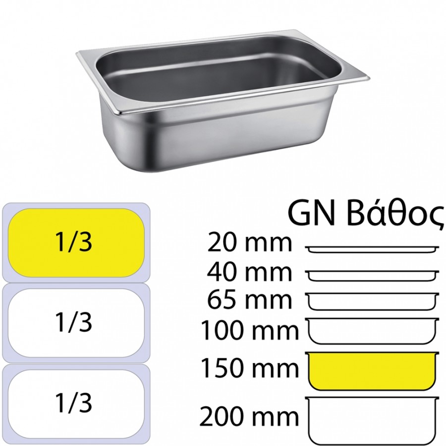 Δοχείο γαστρονομίας ανοξείδωτο 18/10, GN1/3 (32.5x17.6)-15cm, FUECO
