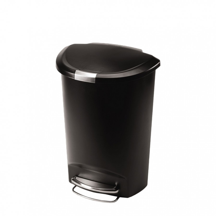 Κάδος απορριμμάτων 50L ημικυλινδρικός πλαστικός με πεντάλ, απαλό κλείσιμο, μαύρος