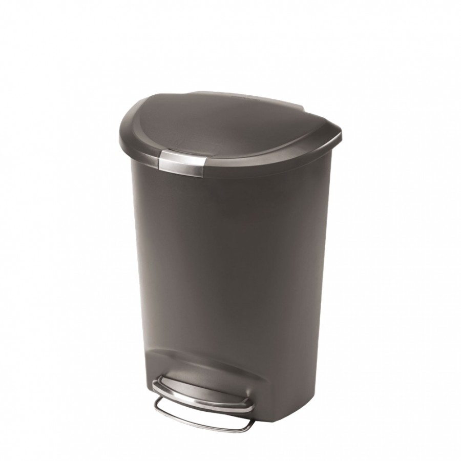 Κάδος απορριμμάτων 50L ημικυλινδρικός πλαστικός με πεντάλ, απαλό κλείσιμο, γκρι