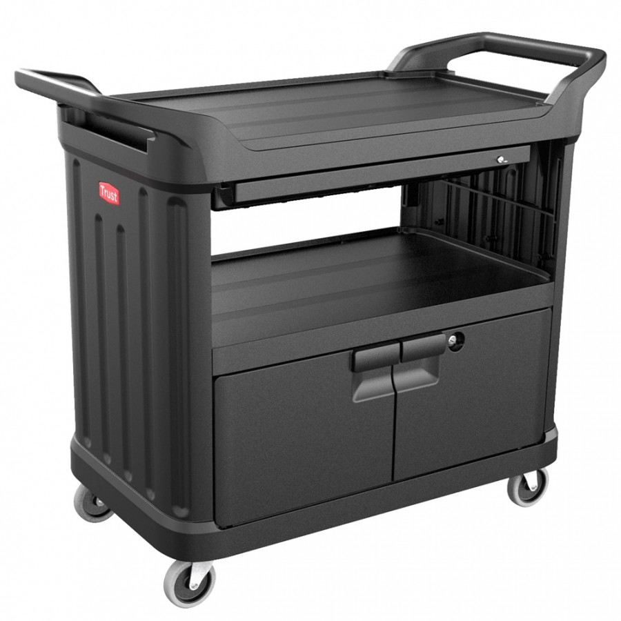 Καρότσι πλαστικό 3 ράφια, συρτάρι & πόρτα, έως 135Kg, 111.6x54x95.6cm, Trust TR.4083/BK